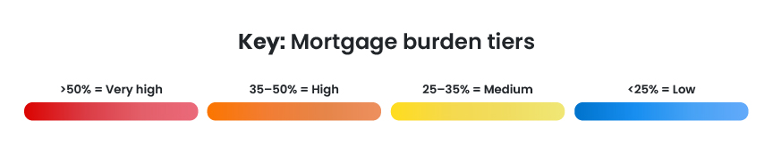 Where mortgage payments take up the smallest share of income