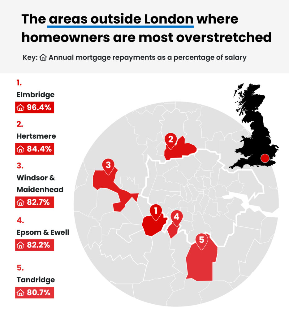 The areas outside London where homeowners are most overstretched