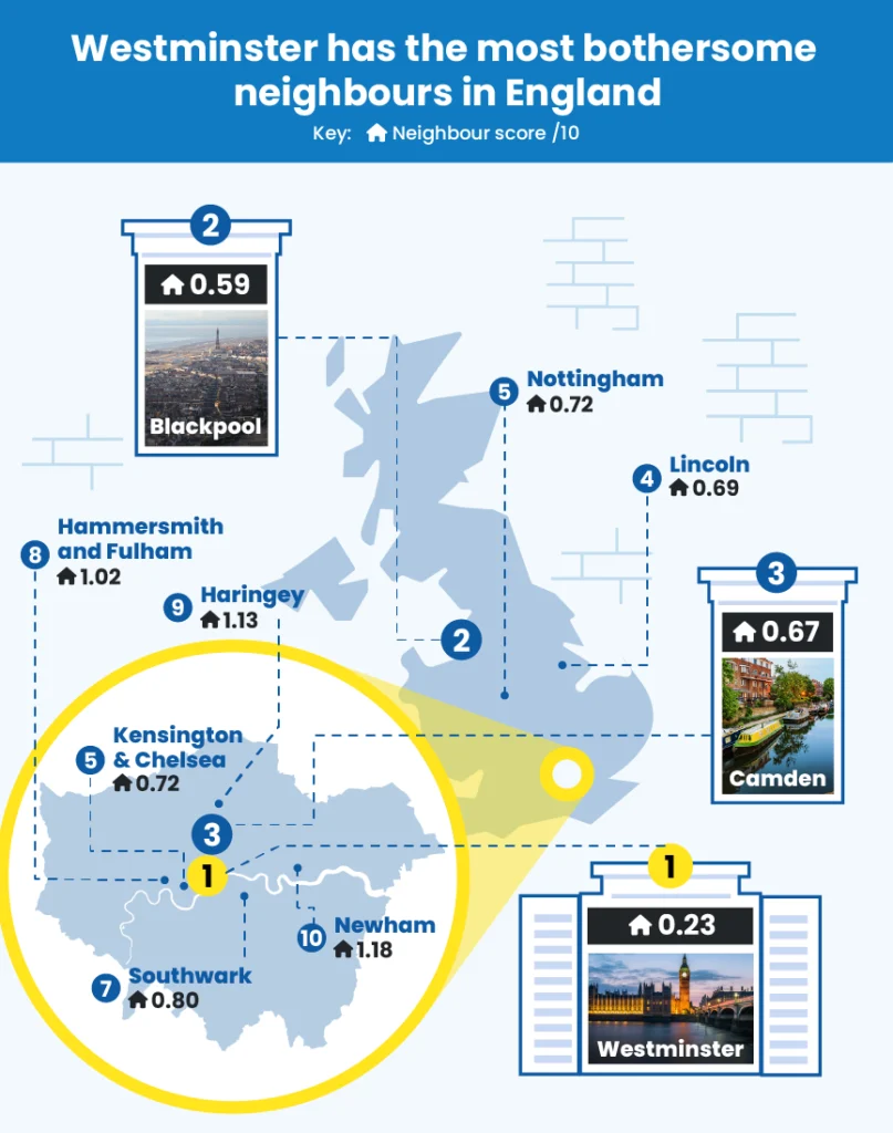 Westminster has the most bothersome neighbours in England
