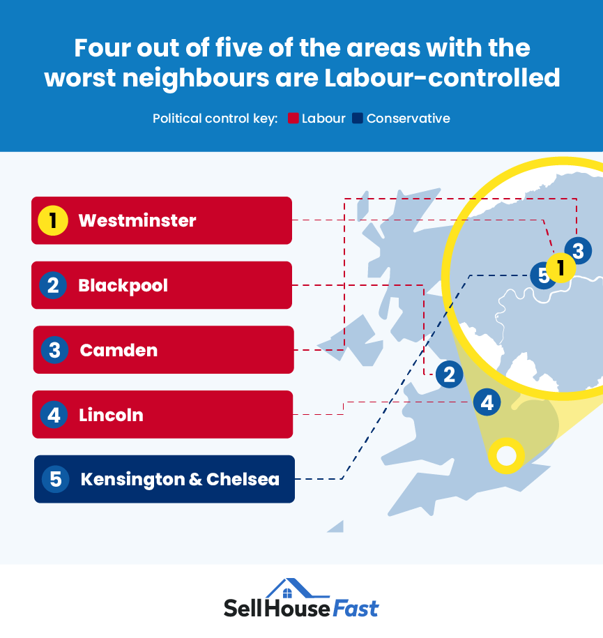 Four out of five of the areas with the worst neighbours are Labour-controlled