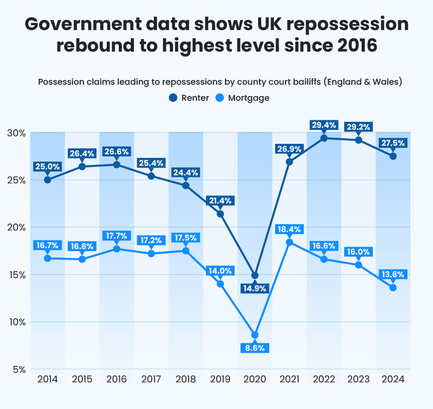 - Renter repossessions are now more than eight times higher than mortgage repossessions.